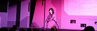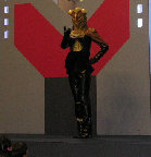 司会のお姉さんに銃をつきつけるダダ。 そこにまばゆい光と共に! |