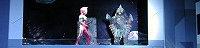 ついに我らのエースが倒れて十字架の貼り付けに(>_<)。 宇宙船内にはベムラーと先ほどのベムスターが大暴れ。 ヤプールは近くにいたピグモンをさらい、 ゴーデス細胞を埋め込みに行ってしまう!? 司会のお姉さんはみんなに頑張れの声援を依頼。 ステージ内に響く子供達の声援。 Kフェスのセイザーショーの時の子供の声がしょぼかったので おじさん嬉しくなりました(笑)。 |
