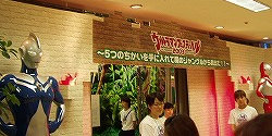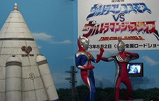 会場入り口。 左にウルトラマンコスモス、 右に初代ウルトラマンが 皆様をお迎えしておりますf(^_^)。 |