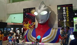 ウルフェス会場に必ず置いてある 巨大ティガの像。 手のひらに人が乗ることができますが、 後の塗装が大変だろうなぁ。 |