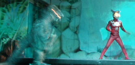 で、今回の悪役であるマグマ星人。 今日起こした事件について我々に丁寧に 説明してくれた後(笑)、レオを煽ります。 |