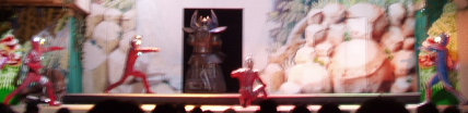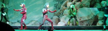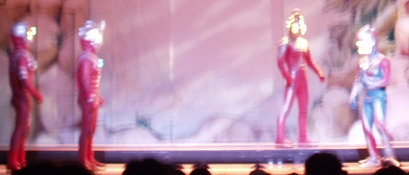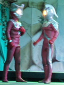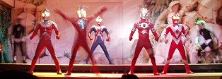 で、ヒーローショーお約束の反省会(笑)。 今回のジャスティスとの戦闘で コスモスは新たな決意を胸に、 レオは当イベントの「ウルトラ隊員5つの誓いを胸に(笑) 全員怪獣動物園の復興作業にとりかかって めでたしめでたし。 で、見てて思ったことですが、 なんでゼアスはあんな まぬけなヒーローに なってしまったのであろうか? ゼアスは生真面目のような気がするんだけど・・・ |