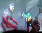 一方、お姉さんを案内していたゼアスは 地底怪獣マグラーに襲われて大ピンチ。 そこへ地上に降り立つコスモス。 しかしジャスティスとの戦いの傷は治っておらず コスモスも必死です! |