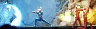 そこへ現れる我等がウルトラマンレオ! 気付いたら今年2003年はキングの誕生日とともに レオの誕生日でもあるのです。 映画のウルトラマン伝説であまり目立った行動を していないからか各イベントで大活躍中です(笑)。 |