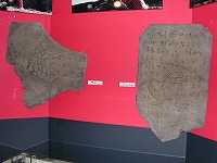 劇中で使用された石板。 上のほうにはパラグラーと レギーラの操演人形が 展示してありました。 |